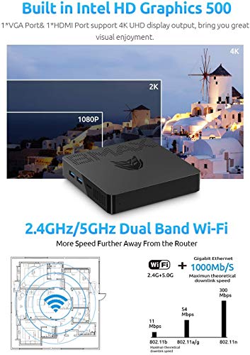 💥【Procesador】Esta mini computadora tiene un procesador Intel Celeron N3350 de doble núcleo. Su frecuencia de funcionamiento básica es de 1,1 GHz, que se eleva a 2,4 GHz en modo ráfaga.