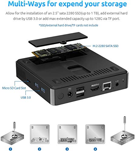 💥【Almacenamiento】6 GB de RAM, 64 GB de espacio de almacenamiento. También puede expandir el espacio de almacenamiento de las siguientes maneras: ranura SATA de 1TB como máximo (M.2_SATA_2280), tarjeta Micro SD de 128GB como máximo y caja de disco duro móvil con puerto USB3.0 de 2TB como máximo (sin incluir la tarjeta SD / SSD / disco duro)