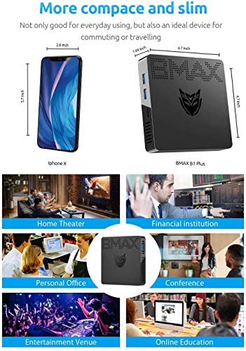 💥【Configuración conveniente】La mini PC BMAX tiene puertos HDMI y VGA, que pueden conectar dos monitores 4K HD para realizar entretenimiento visual en el hogar, lo cual es muy adecuado para la oficina en casa, Internet, películas o Internet.