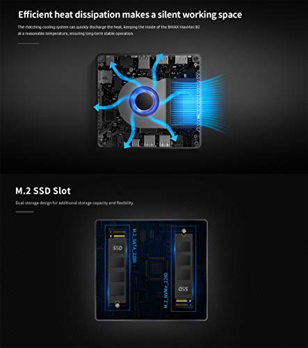 🌸【8GB DDR4 + 128GB SSD】 Esta mini computadora proporciona suficiente capacidad. También puede usar M.2_NVMe_2280 x1 y 2.5-inch SATA HDD x 1 para expandir el espacio de almacenamiento, o quitar la SSD M.2_SATA_2280 (128G) en el producto, Reemplace con una memoria más grande (HDD / SATA HDD cable / Nvme SSD no incluido)
