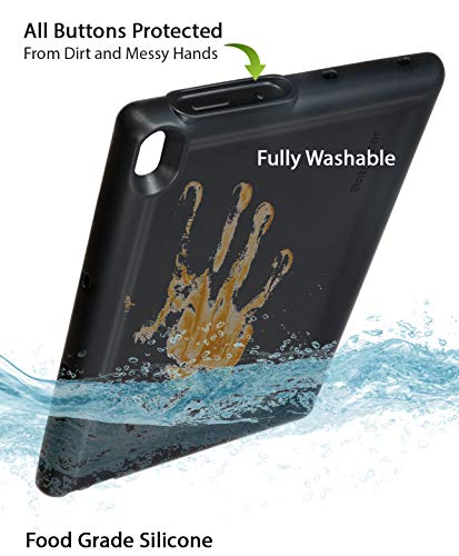 Específicamente diseñada para puertos e interruptores de su modelo de la tableta. Hace su tableta más fácil de sostener y proporciona un agarre cómodo. Ideal para los niños, fácil de limpiar, de Calidad Alimentaria de silicona.