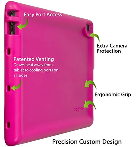 Excelente aspecto y resistente protección, diseñada a medida por Bobj para su modelo de tableta. Los materiales de alta calidad y diseño proporcionan la mejor absorción de protección de caída y choque. Resistente y elegante, sino que también permite un fácil uso de todas las funciones de su tableta. El diseño proporciona un fácil uso de los «finger swipes» a través de la pantalla, una acción integral utilizando tabletas modernas. Grandes opciones de color permiten a todos a identificar fácilmente su propia tableta. El bisel frontal redondeado ayuda a proteger la pantalla si se le cae la cara de la tableta hacia abajo. Altavoces Tablet en el bisel frontal han añadido protección, mientras que los altavoces en la parte lateral o posterior de la tableta se beneficiarán del aumento de la reverberación y la redirección del sonido hacia el usuario. (ver fotos). La tarjeta Micro-SD está cubierta para protección adicional contra caídas o pérdidas accidentales. El BobjBounces! diseño avanzados asegura todos los bordes son gruesas de silicona para protección adicional, y todas las esquinas proporcionan protección de la esquina superior, mientras se mantiene un aspecto suave, liso. Este modelo Bobj tiene un diseño «patent pending» que proporciona refrigeración por aire pasivo continuo para las tabletas avanzadas que tienden a correr un poco más caliente. Para un uso seguro y fácil mantenimiento, utilizamos una fórmula de silicona de alta calidad que cumple con los requisitos de calidad alimentaria de EE.UU. FDA. Se limpia fácilmente con agua y jabón de manos suave o antiséptico, y se seca con un paño libre de pelusa. La facilidad de limpieza, más el diseño robusto y ajuste perfecto, hace que su protección tableta Bobj ideal para los niños y más seguro en el uso diario. Protección robusta Bobj se utiliza actualmente en los sistemas escolares, empresas profesionales. La tableta no se incluye con este producto Bobj.