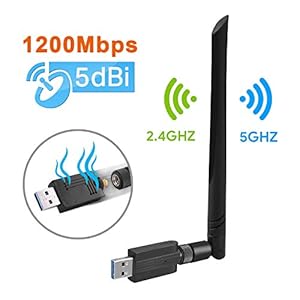 Maxesla Adaptador WiFi AC1200 USB WiFi Dongle, 5dBi Dual Band 2.4/5GHz Adaptador de Red inalámbrico para PC/Escritorio…