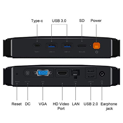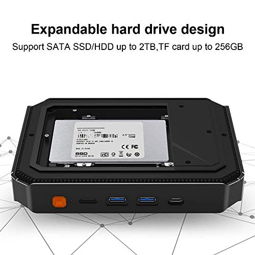 ✔ Ampliación de almacenamiento de múltiples maneras: soporta HDD SATA (hasta 2 TB) y tarjeta TF (hasta 128 GB), mientras tanto, viene con 2 puertos USB 2.0, 2 puertos USB 3.0 y Type-C. Los puertos VGA y HD también están disponibles y el puerto HD puede producir vídeo 4K, 60FPS.