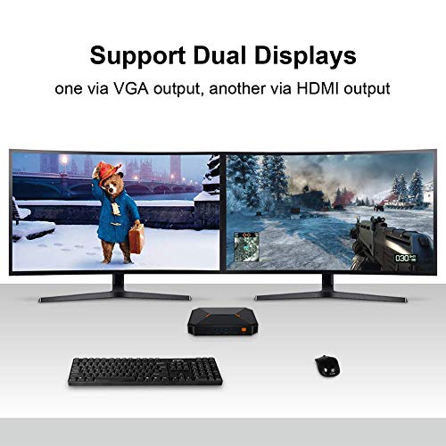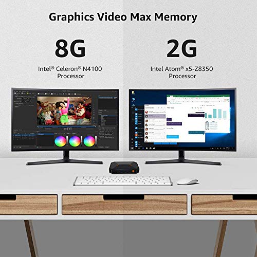 ✔ Diseño sin ventiladores y silencioso — Muy silencioso con gran rendimiento, este mini PC adopta componentes de alta eficiencia energética y elementos de refrigeración, no hay ruido durante el funcionamiento y la resolución de hasta 4096 x 2160 a 60 Hz y reproduce vídeos 4K sin problemas.