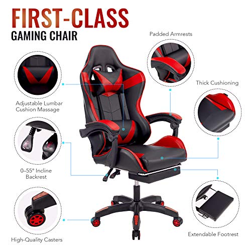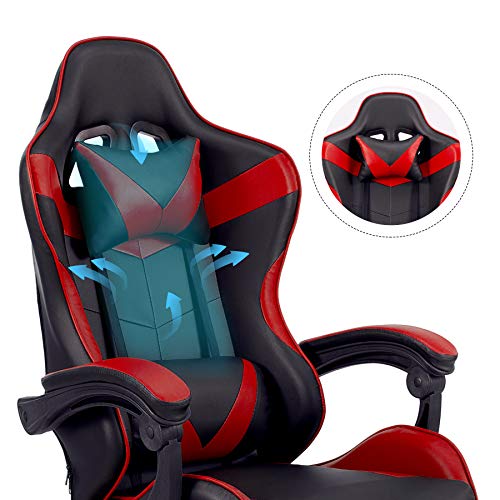 COMODIDAD ERGONÓMICA — Esta silla gamer incluye abundante acolchado de espuma envuelto en cuero sintético flexible para comodidad durante todo el día y una fácil limpieza; los cojines de apoyo lumbar y reposacabezas incorporados se ajustan para un ajuste personalizado que le permite jugar o trabajar todo el día sin fatiga ni dolor de espalda
