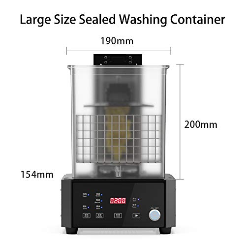 Depósito de lavado sellado de gran tamaño: el UW-01 viene con un depósito sellado de 190 x 154 x 200 mm. Soporta modelos más grandes para la limpieza. Con un recipiente sellado y tapa son compatibles con los modelos más grandes para la limpieza. Con un recipiente sellado y una tapa se evita la evaporación de la solución de limpieza y se almacena la solución de limpieza para un uso repetido.