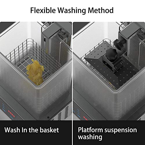 Método de lavado flexible: el UW-01 soporta dos métodos de lavado del modelo. El modelo se puede lavar por separado en la cesta o junto con las placas inferiores. El primer lavado en la cesta, simplemente retira el modelo y lava en la cesta. El segundo es un tratamiento en suspensión de plataforma para reducir el contacto con la resina.