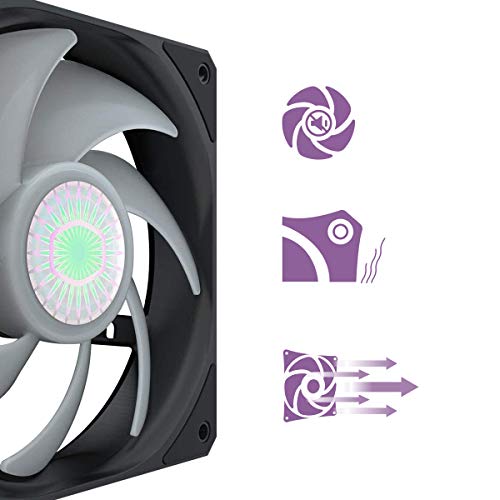 VENTILADOR SICKLEFLOW 120 RGB – Rodamiento ultra silencioso (rifle bearing), ventilador translucido Air Balance 2.0 con 7 aspas, mayor presión de aire (2.5 mmH2O) y ruido reducido (27 dBA); su nuevo marco presenta una forma que mejora la durabilidad estructural