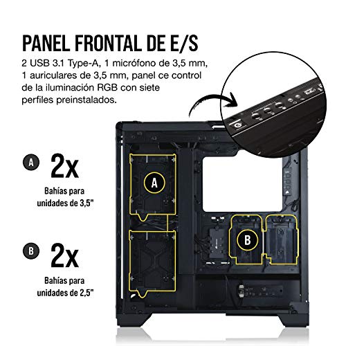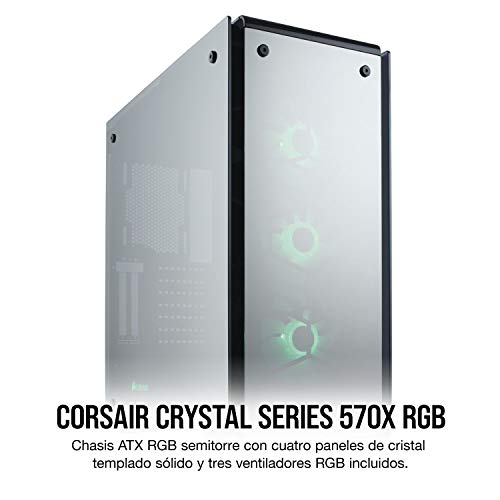 CORSAIR Crystal Series 570X RGB Mirror Black es un chasis semitorre premium para PC cerrado por cuatro paneles de un inmaculado cristal templado con acabado de espejo que permite exhibir todos los componentes del equipo. Tres ventiladores LED SP120 RGB incluidos, iluminación RGB del chasis y un controlador LED integrado permiten iluminar el chasis con los colores y efectos que desee. Con espacio para radiadores con refrigeración líquida de hasta 360 mm, seis ventiladores de refrigeración y un montaje de GPU en vertical, el modelo CORSAIR Crystal Series 570X RGB Mirror Black está pensado como el escaparate perfecto para los equipos más ambiciosos.