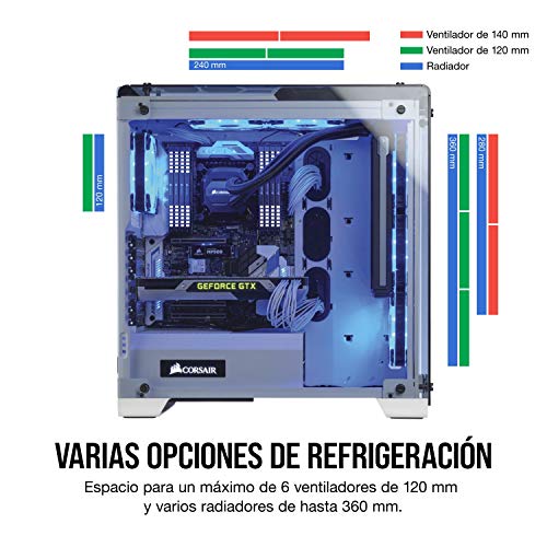 Espacio para un máximo de seis ventiladores de chasis, y compatible con radiadores de 360 mm, 280 mm 240 mm y 120 mm