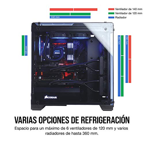 Espacio para un máximo de seis ventiladores de chasis, y compatible con radiadores de 360 mm, 280 mm 240 mm y 120 mm