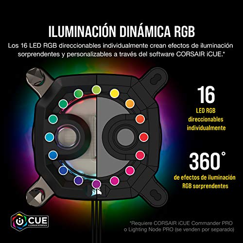 Iluminación RGB brillante integrada: Los 16 LED RGB direccionables individualmente ofrecen 360° de RGB personalizable e increíble si se combinan con CORSAIR Lighting Node PRO o Commander PRO