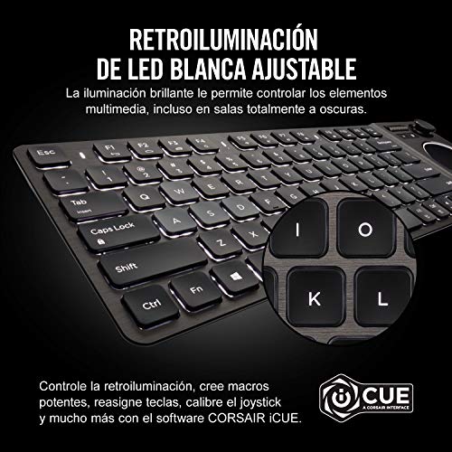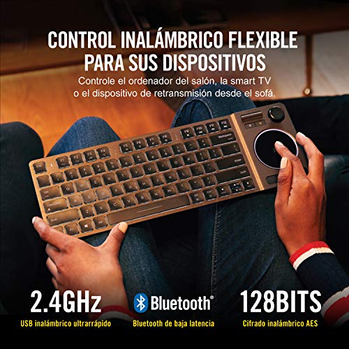 El teclado de entretenimiento k83 wireless ofrece lo último en control multimedia para la sala de estar. Un refinado diseño en aluminio con retroiluminación blanca ofrece un aspecto deslumbrante y permite ver todas las teclas incluso en la oscuridad. Gracias al panel táctil y al joystick integrados, la navegación por menús y la acción en los juegos es suave y uniforme, mientras que las cómodas teclas hacen que teclear en el sofá resulte tan fácil como en el escritorio. Conéctese al pc del salón, a su smart tv compatible y a su reproductor multimedia de retransmisión de medios con la opción de conexión inalámbrica ultrarrápida de 2,4 ghz o bluetooth inalámbrico de baja latencia el k83 wireless está listo para jugar cuando le apetezca gracias a las 40 horas continuas de duración de la batería recargable por usb. Con un estilo elegante y lo último en control multifunción, el k83 wireless es una butaca en primera fila para disfrutar de sus archivos multimedia.