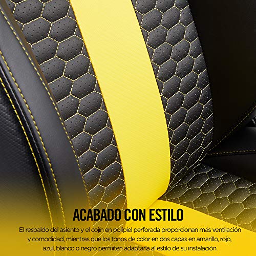 Creada para ofrecer comodidad: el asiento ancho, el respaldo alto y el cojín del asiento mullido proporcionan comodidad durante todo el día para las sesiones de juego más exigentes