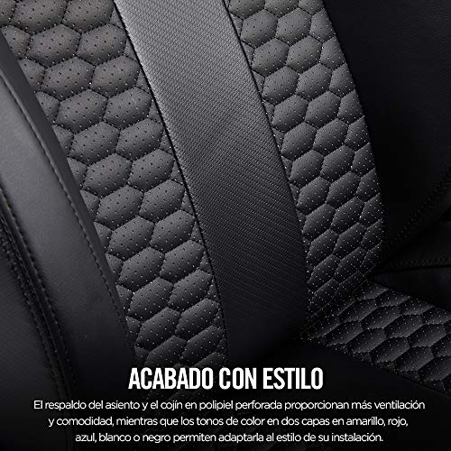 Corsair T2 Road Warrior – Silla de Polipiel Videojuegos (Fácil de Ensamblar, Giratoria Ergonómica, Altura Ajustable y…
