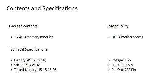 4GB Corsair DDR4 Value Select, PC4-17000 (2133), Non-ECC Unbuffered, CAS 15-15-15-36, 1.2V, Single Stick, Desktop Memory.