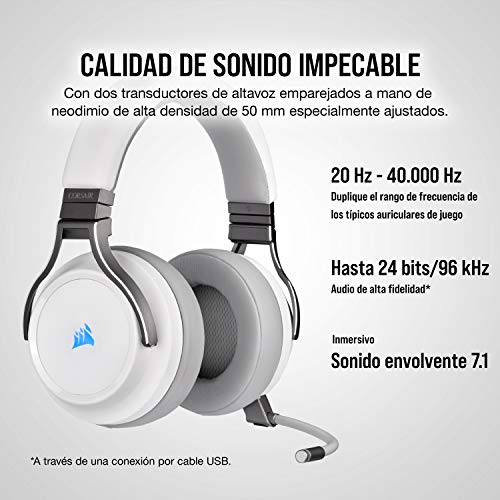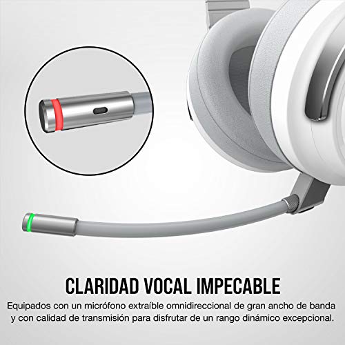 Los CORSAIR Virtuoso RGB Wireless ofrecen una experiencia de sonido de alta fidelidad a los jugadores más exigentes, combinando una calidad de audio impecable con una comodidad continua gracias a la banda y a las orejeras de espuma con memoria premium. Se conectan a casi cualquier dispositivo con la tecnología SLIPSTREAM Corsair wireless de latencia ultrabaja, un cable de 3,5 mm o un cable USB de 24 bit/96 KHz. Hágase oír con un micrófono de calidad profesional extraíble y omnidireccional con calidad de transmisión y un rango dinámico excepcional. El diseño de aluminio ligero garantiza la durabilidad a largo plazo, mientras que la batería inalámbrica de 20 horas de duración y 18 metros de alcance le ofrecen una libertad absoluta a la hora de escuchar. La iluminación RGB en cada orejera crea un estilo visual refinado mientras escucha. El software CORSAIR iCUE permite personalizar los ajustes del ecualizador de sonido, disfrutar de un sonido envolvente e inmersivo 7.1, controlar la iluminación RGB y mucho más, convirtiéndole en el maestro de su experiencia de juego.