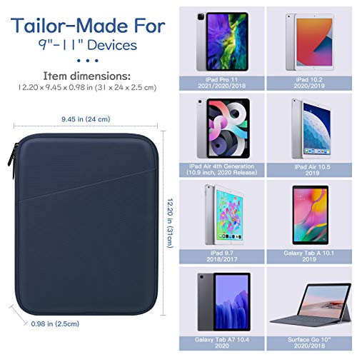 Compatibilidad Perfecta: Esta funda de tableta diseñada especialmente para las tabletas de 9-11 Pulgadas, como iPad Air 4 10,9 2020, iPad 10,2 2019 & 2020 (iPad 7th/8th Gen), iPad Pro 11 pulgadas (1st /2nd Gen), iPad Air (3rd Gen) 10,5 2019, iPad 9,7 (6th/5th Gen), iPad Air/Air 2, iPad Pro 9,7/10,5”, Surface Go 2/1 10,5 2020, Surface Go 10 2018, Galaxy Tab A7 10,4 2020/S6 Lite 10,4/Tab A 10,1, Tab P11 11” 2020, Tab M10 FHD Plus 10,3 “, Tab M10/Tab M10 HD (2nd Gen) 10,1”.