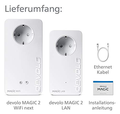 Devolo Magic 2 WiFi next: set de inicio más rápido del mundo para red inalámbrica de alta velocidad mediante cable de alimentación, ideal para streaming, juegos y oficina en casa (2400 Mbit/s, 3 puertos Gigabit LAN, WLAN ac, G. hn)