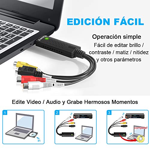 Fácil de Operar: Entrada de video: conector S-Video (Mini-DIN 4) y conector compuesto CVBS. Entrada de audio: canal izquierdo (Audio-L) y canal derecho (Audio-R). Operación simple en PC y laptop.