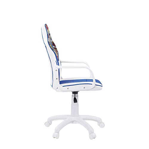 La silla incluye un mecanismo giratorio capaz de soportar 100kg de peso, con sus cinco ruedas y el pie de estrella color Blanco, podrás conseguir un desplazamiento suave y ligero. El respaldo y el apoyabrazos son fijos, aportando así una mayor estabilidad.