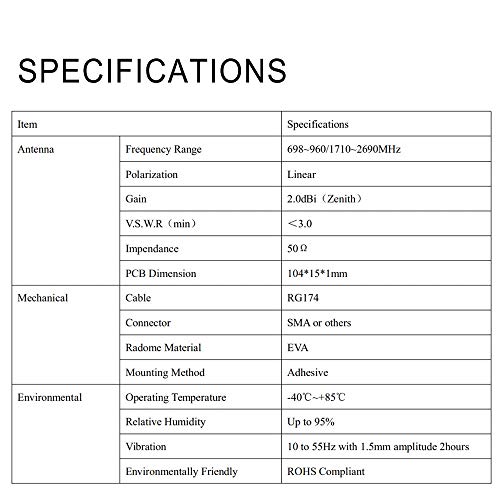 Aplicaciones: 4G LTE WiFi Routers 2G 3G Hotspot 3G 4G GSM Inalámbrico Bluetooth HSDPA UMTS DCS Amplificador de señal Módem USB Módem