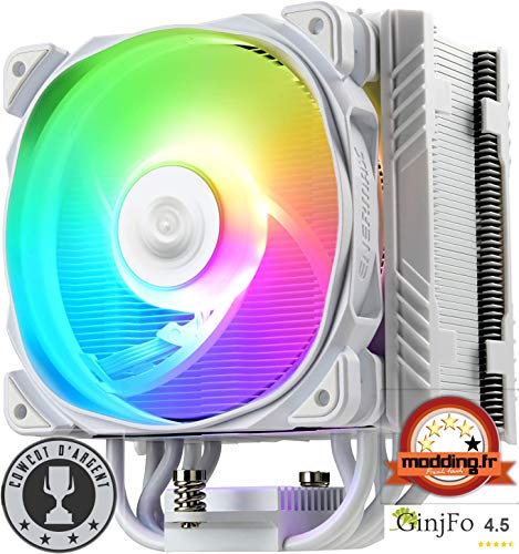 El enfriador está equipado con LED RGB direccionables. El ventilador ofrece el efecto de iluminación RGB del arco iris. La iluminación RGB sincronizable es compatible con los cabezales RGB directos de las placas base Asus, Asrock, MSI y Gigabyte Efectos de luz programables mediante el software de la placa base. Razer Chroma Support con placas base compatibles de Asrock and MSI. Nota: los LED RGB direccionables funcionan con 5 V, no conecte con un cabezal de 4 pines no adressierbaren con 12 V.