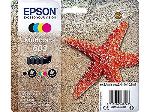 Tintas serie Epson 603 Esta tinta económica de cuatro colores ofrece una solución de impresión de bajo coste y alta fiabilidad, fruto de la investigación y desarrollo de Epson. La tinta 603, que produce copias nítidas y de colores vivos, está optimizada para funcionar con la gama de impresoras de Epson. Puede producir una amplia variedad de documentos de texto y gráficos de una excelente definición.