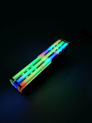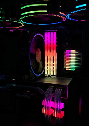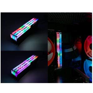 El color del LED RGB cambia automáticamente. LED de alta densidad. La luz se distribuye uniformemente gracias a los LED de alta densidad y al difusor. Fácil enrutamiento de los cables. Conecte en cadena todos los disipadores de calor EZDIY DDR RGB con 3 clavijas estándar.
