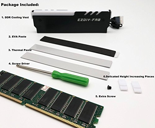 Equipado con luces LED RGB direccionables, puede controlar y cambiar los 250 colores conectándose a la placa madre u otro controlador RGB, LED de alta densidad. La luz se distribuye uniformemente gracias a los LED de alta densidad y al difusor. Fácil enrutamiento de cable. Conexión en cadena de todo el disipador de calor EASYDIY DDR RGB con RGB estándar de 4-1 pines (5V, Di, -, G).