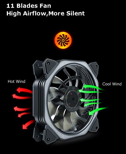 Diseño ultra silencioso: ventilador de PC LED de 120 mm con diseño innovador de 11 aspas de ventilador, mejoró el flujo de aire y minimizó el ruido.