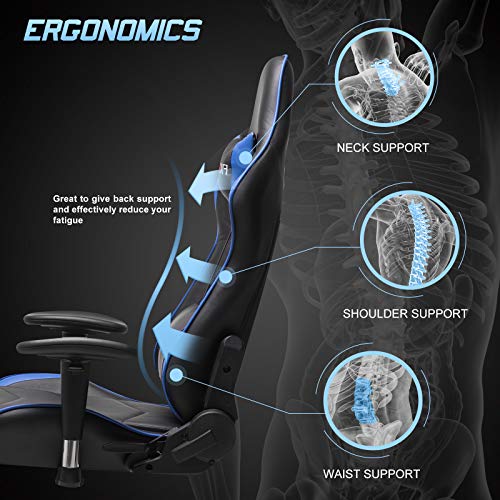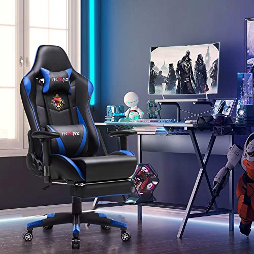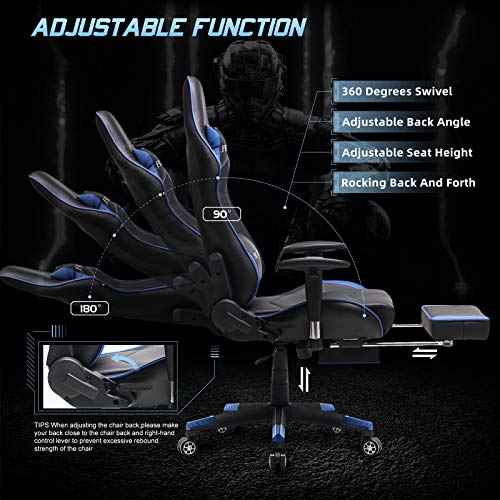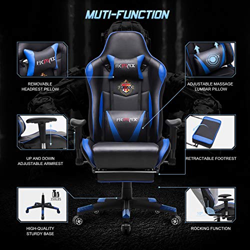 – Silla ergonómica para juegos Silla para computadora con masaje de soporte lumbar, sillas de juego para deportes electrónicos para computadora, silla para juegos con cojín para reposacabezas, silla para juegos con reposapiés