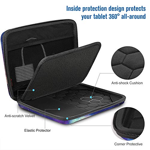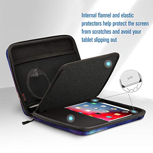 【Protección completa】 El exterior rígido de EVA evita el aplastamiento externo y proporciona una buena protección de las esquinas. La correa elástica interna mantiene su dispositivo perfectamente ajustado, además de un cojín a prueba de golpes y terciopelo que le brinda a su iPad y otros accesorios una mejor protección.