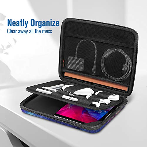 【Bien organizado】 Además del compartimento de la tableta, esta funda rígida también tiene correas elásticas incorporadas para mantener su Apple Pencil / Cable / Dongle / auricular en su lugar, y grandes bolsas de malla para varios dispositivos.