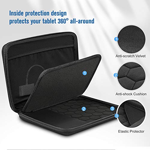 【Protección completa】 El exterior rígido de EVA evita el aplastamiento externo y proporciona una buena protección de las esquinas. La correa elástica interna mantiene su dispositivo perfectamente ajustado, además de un cojín a prueba de golpes y terciopelo que le brinda a su iPad y otros accesorios una mejor protección.