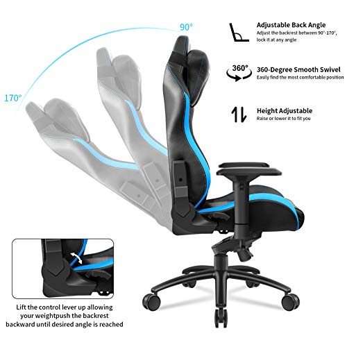 【Personalice la silla de su computadora】 Altura ajustable, oscilación de 15 °, reclinación de 90 a 170 grados; Apoyabrazos ajustables 4D mejorados; Soporte lumbar extraíble y almohada reposacabezas para encontrar la posición más cómoda. Capacidad máxima de peso: 352 lb / 160 kg.