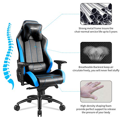 【Evite las manchas de sudor】 La silla ergonómica para juegos hecha de cuero PU de primera calidad con orificios transpirables hace que el aire circule libremente, mantenga su espalda fresca y seca incluso trabajando o jugando durante mucho tiempo. Esta silla para juegos hará que su cuerpo se relaje y le brindará una excelente experiencia de juego.