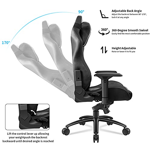 【Personnalisez votre chaise d’ordinateur】 Vous pouvez ajuster chaque partie de cette chaise de jeu de style course pour s’adapter parfaitement au type et à la hauteur de votre corps. Hauteur réglable, angle du dossier et système de verrouillage d’inclinaison pour verrouiller le dossier à n’importe quel angle jusqu’à 155 °; Accoudoirs réglables; support lombaire librement réglable et oreiller d’appui-tête protégeant votre colonne vertébrale et votre cou.