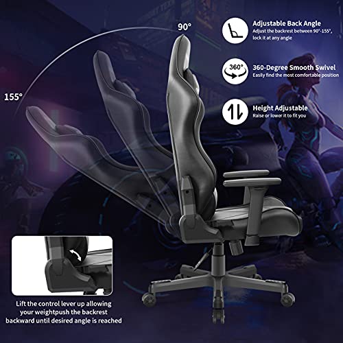 【Comodidad incomparable】 Silla ergonómica para juegos hecha de cuero PU premium transpirable y espuma viscoelástica de alta densidad, agradable para la piel y con una vida útil más larga. Estructura de acero grueso, extremadamente resistente y duradero. Esta silla para juegos es una buena opción para conquistar su mundo de juegos, estudiar en el dormitorio y trabajar en la oficina.