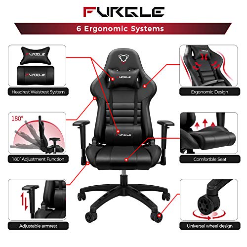 Furgle Sillas Gaming con Respaldo Alto, Cojín de Látex y Reposabrazos Ajustables, Silla de Oficina Ergonómica Estilo…