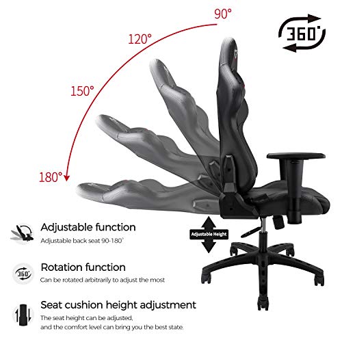 【Silla de carreras y diseño ergonómico】 Marco de metal y esponja integrada de alta densidad que ofrecen un agarre potente para la cabeza, la cintura y la cadera y se pueden rebotar fácilmente. La silla Game Chair tiene la misma sensación que la silla de carreras y tiene un diseño ergonómico. Excelente piel para mayor comodidad y transpirabilidad.