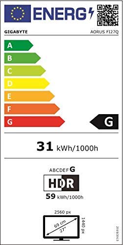 Gigabyte AORUS FI27Q – Monitor Gaming de 27» 2K ULTRA HD (2560×1440, 16:9, Panel IPS ,165 Hz, pantalla Plano) Color…