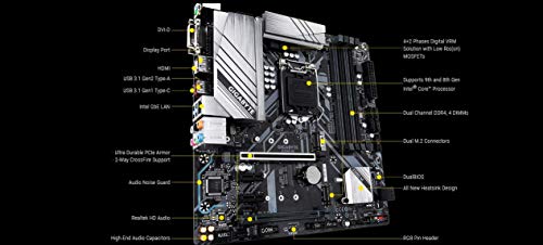 Placa base gigabyte z390 express`lga1151´microatxï 2 x pci-express 16 x 2 m 2 memory ddr4 memory slots 4 – 1 x dvi- 1 x displayport 2 x USB 2.0 3 x USB 3.1 1 x USB tipo c 1 x ps/2 rj45, 6 puertos de audio 390m