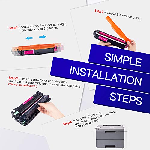 2. Contenido del paquete: 1 Negro/1 Cian/1 Magenta/1 Amarillo Compatible Cartuchos de tóner Reemplazo para TN 241, TN 245, TN-241 BK, TN-245 C M Y, TN242 TN246, TN-242 TN-246 (no original).