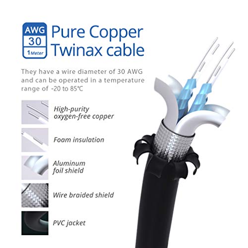 SFP+ to SFP+ Direct Attach Copper Cable, AWG30, 1-meter.