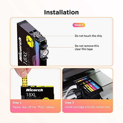 Cartuchos de tinta 18XL compatible con Hicorch, los chips inteligentes identifican la impresora con precisión. Tinta de alta calidad para una impresión suave. Alto rendimiento de página, ahorro de costes. Fácil de usar sin dañar la impresora.