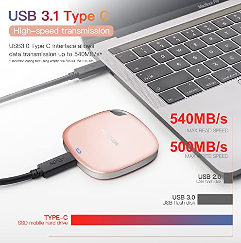 Transferencias de alta velocidad: las velocidades de lectura de hasta 540 MB / s le permiten mover fotos y videos de alta resolución rápidamente, transfiere archivos casi 5 veces más rápido que la unidad de disco duro externa (HDD), según las pruebas internas, el rendimiento puede variar según el dispositivo host, condiciones de uso, capacidad de la unidad y otros factores.