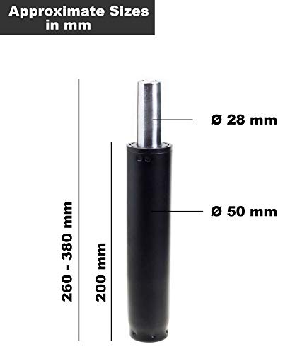 Elevador de gas recto de tamaño universal : este Cilindro de repuesto universal está diseñado para adaptarse a la mayoría de las sillas ejecutivas, de computadora y de escritorio : Diámetro 50 mm agujero central ( Normalmente esta medida es estándar en sillas de escritorio, sillas de oficina, sillas gaming, sillones giratorios, etc.).