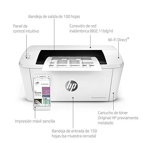Bandeja de entrada principal de 150 hojas, bandeja de salida de hasta 100 hojas.